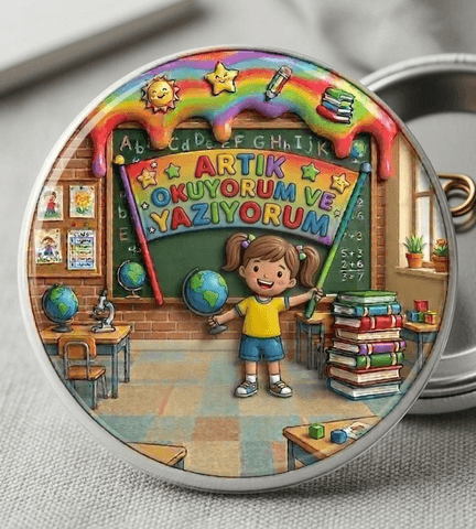 1 adet Artık Okuyorum ve Yazıyorum Kız Çocuk büyük boy iğneli rozet