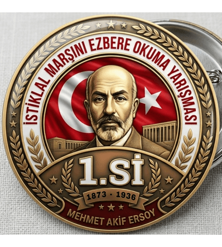 1 adet İstiklal Marşını Ezbere Okuma Yarışması Birincisi kaliteli baskı büyük boy iğneli rozet