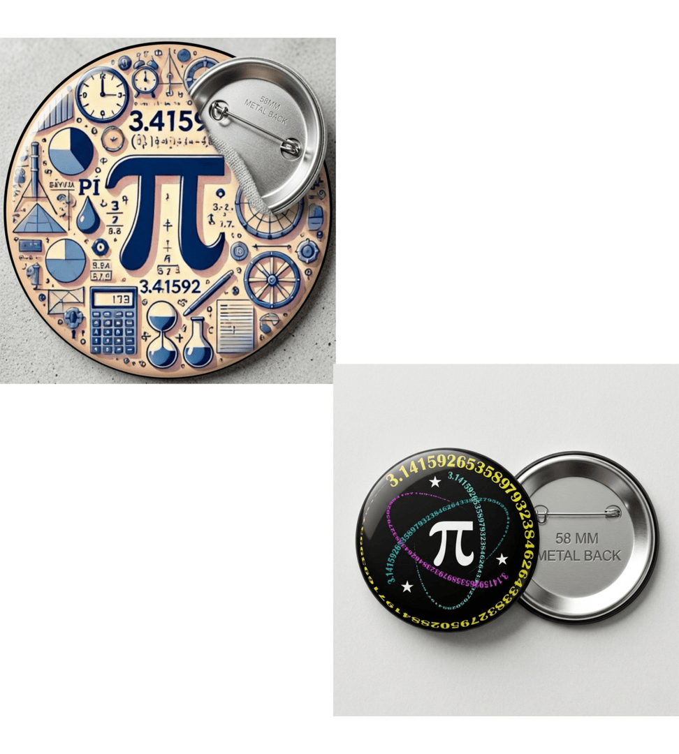 10 adet Pi günü Büyük boy foroğraf kağıdına baskı iğneli rozet
