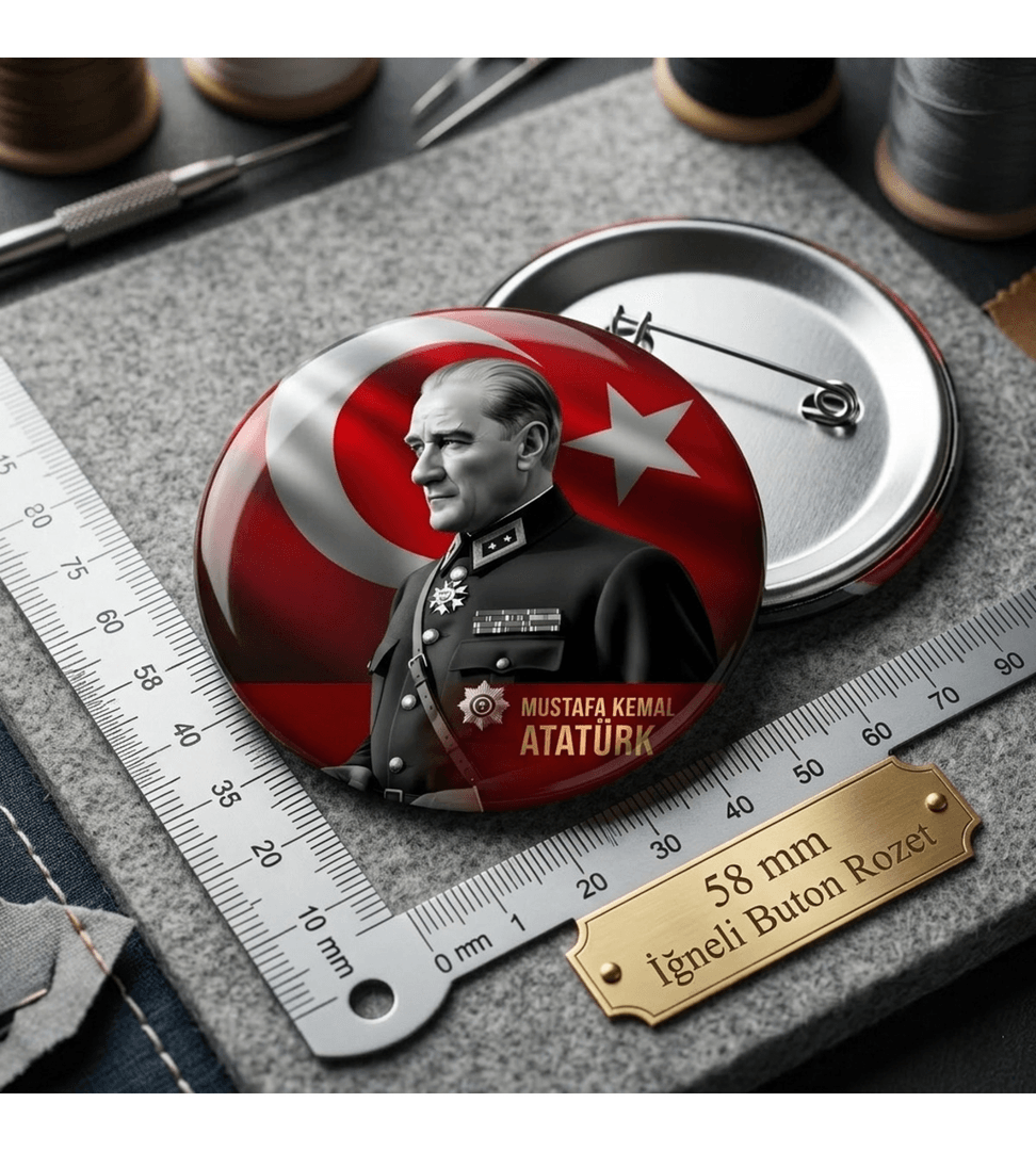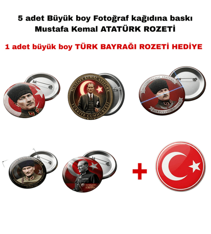 5 adet Mustafa kemal atatürk BÜYÜK BOY kaliteli baskı iğneli rozet (hediyeli)