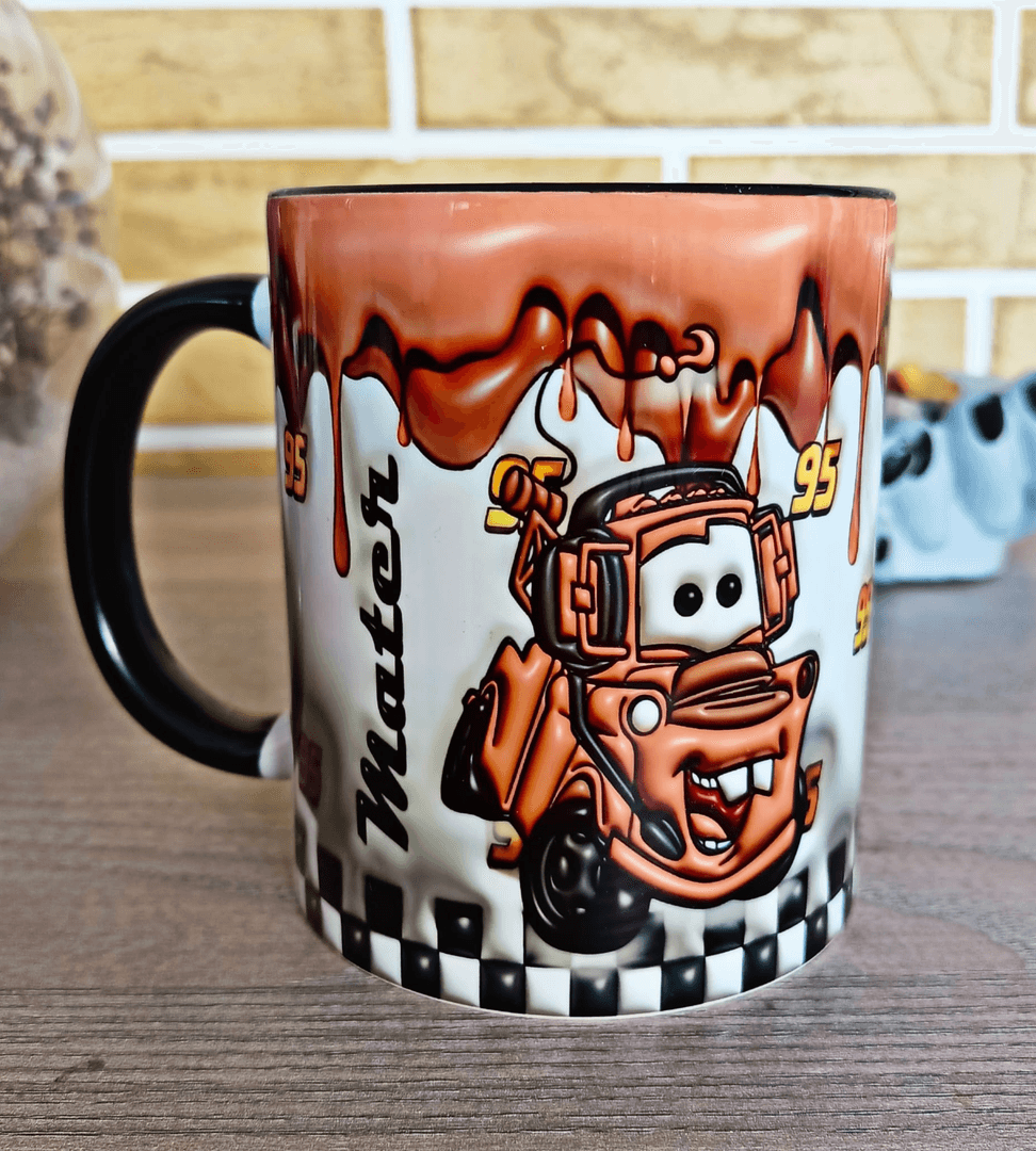 Arabalar Baskı içi ve Kulpu Renkli Kupa