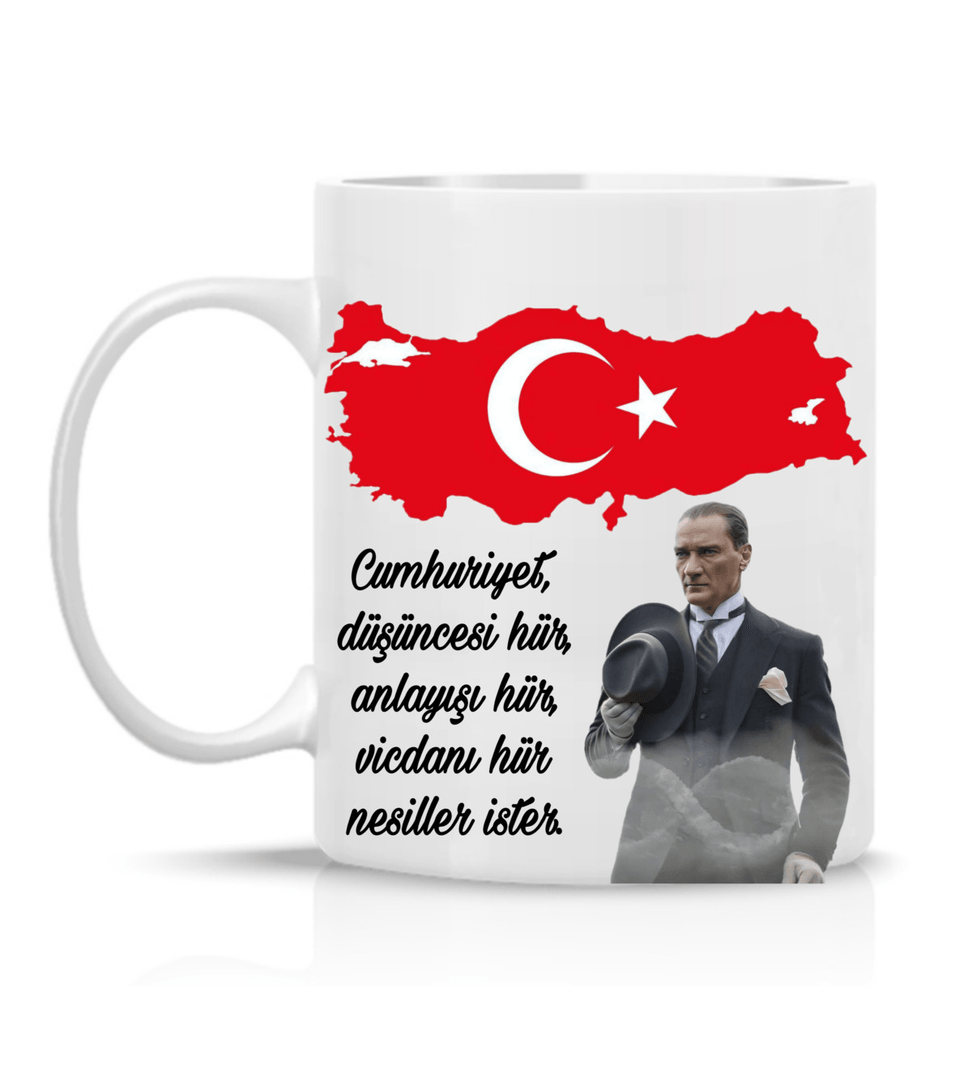 Atatürk Cumhuriyet özel tasarım büyük boy porselen kupa