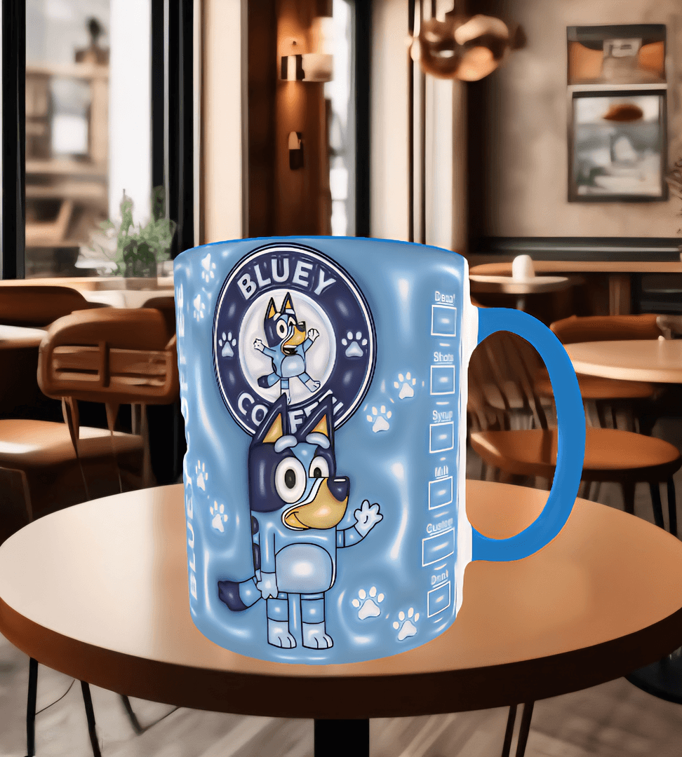 Bingo Bluey Baskı içi ve Kulpu Renkli Kupa