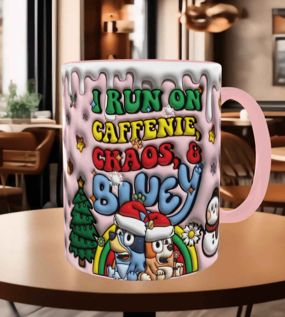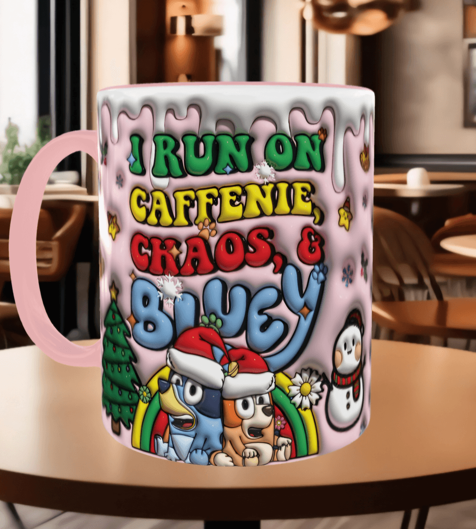Bingo Bluey Baskı içi ve Kulpu Renkli Kupa