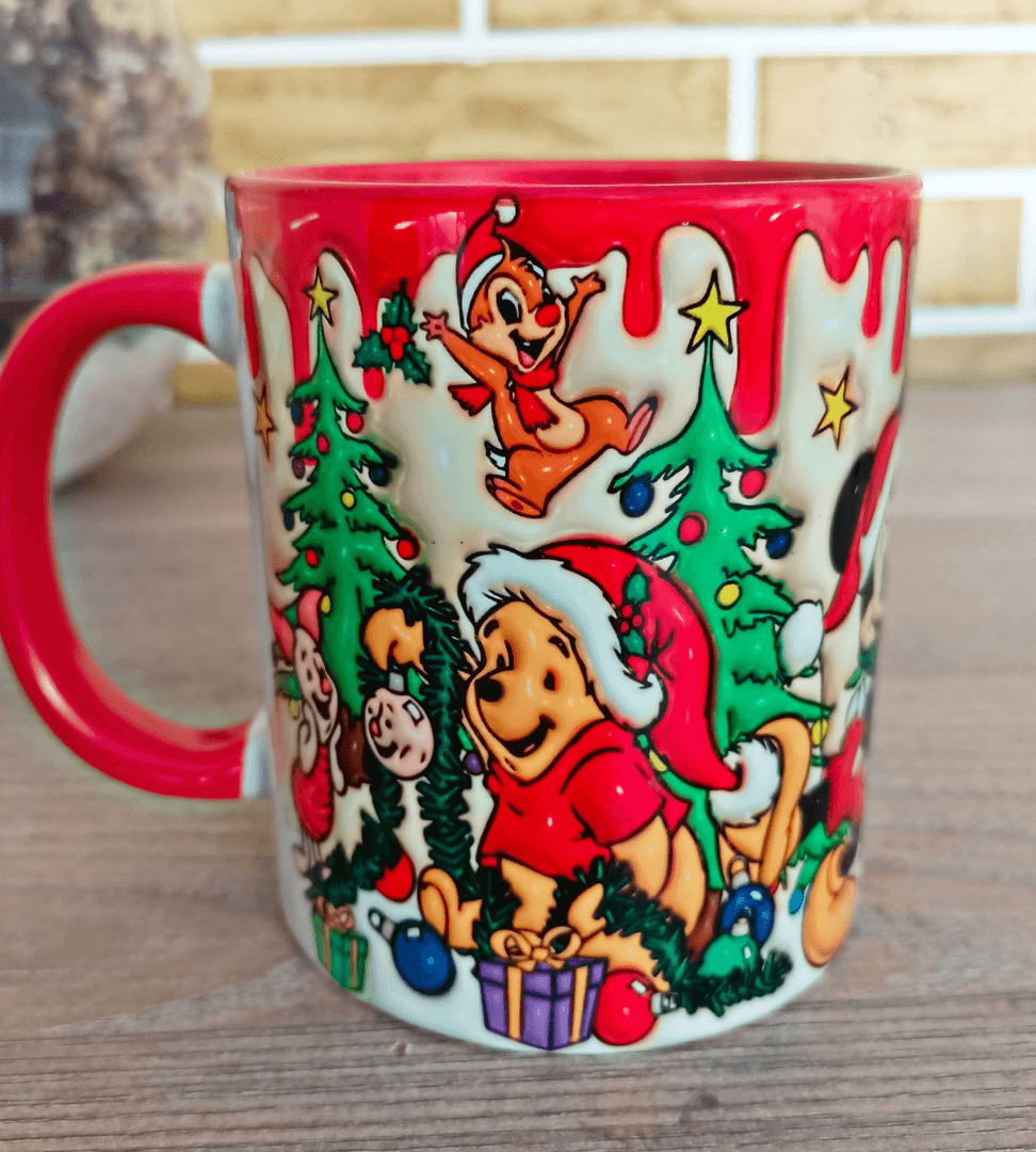 Bütün ekip Noel yılbaşı Baskı içi ve Kulpu Renkli Kupa