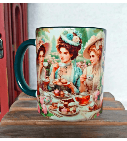 Çay keyfi vintage baskı büyük boy porselen kupa