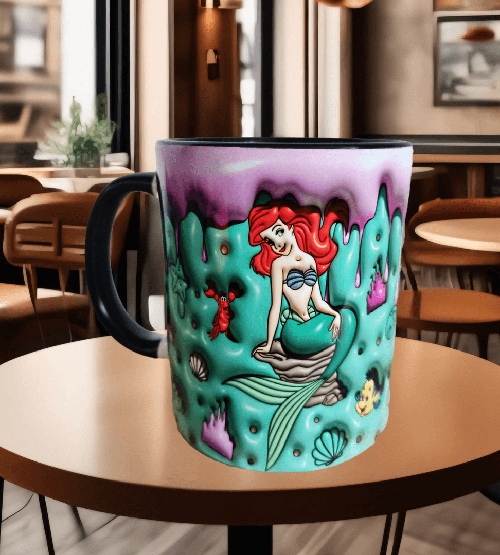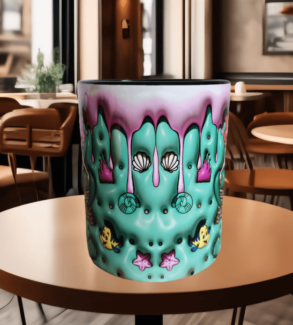 Deniz kızı Baskı içi ve Kulpu Renkli Kupa