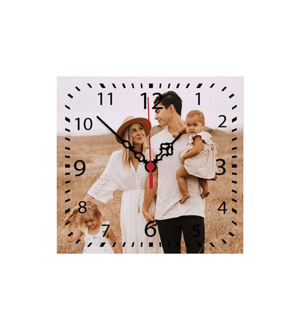 Fotoğraf veya Logo Baskılı Kare Ahşap Duvar Saati | Kişiye Özel Tasarım | Ofis ve Ev Dekoru