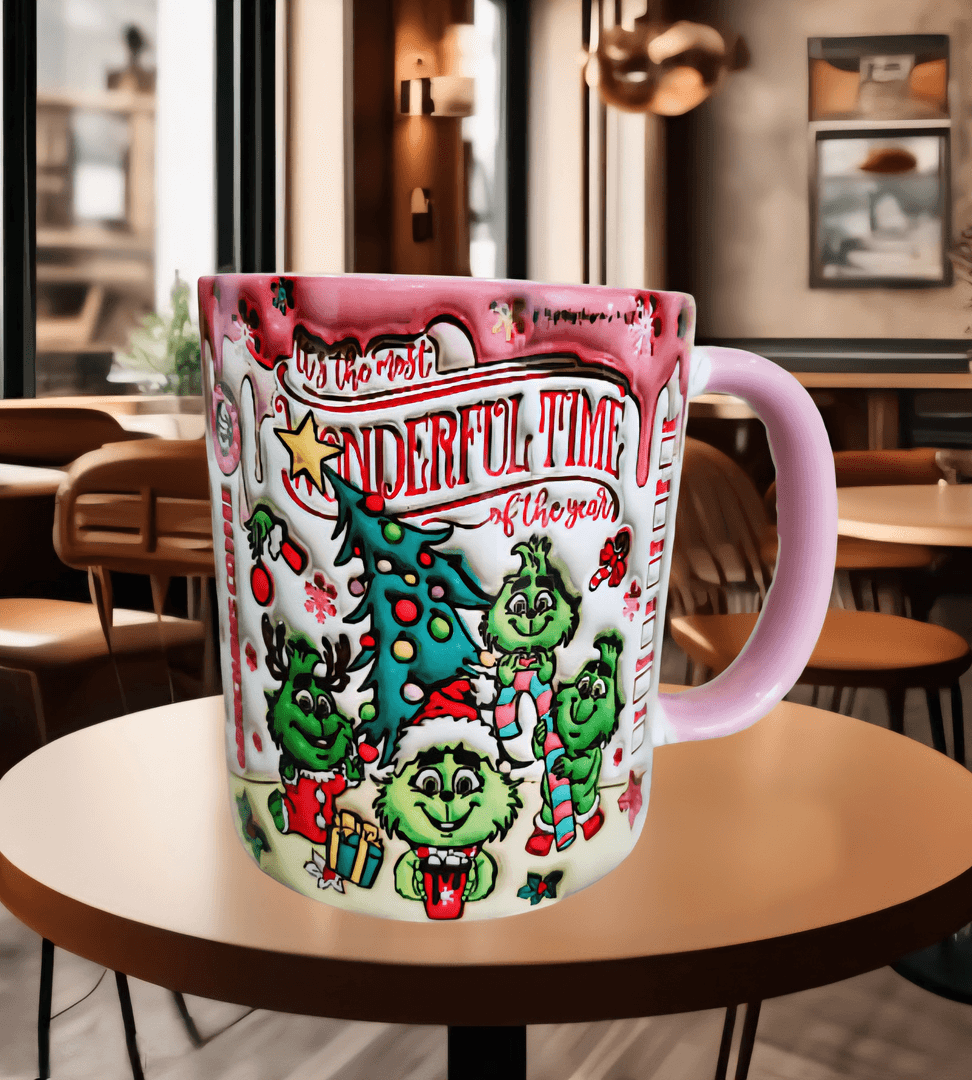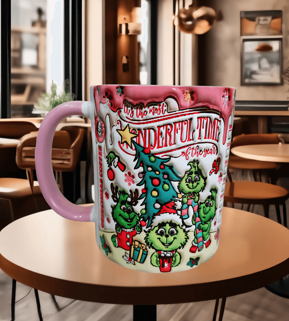 Grinch noel Baskı içi ve Kulpu Renkli Kupa