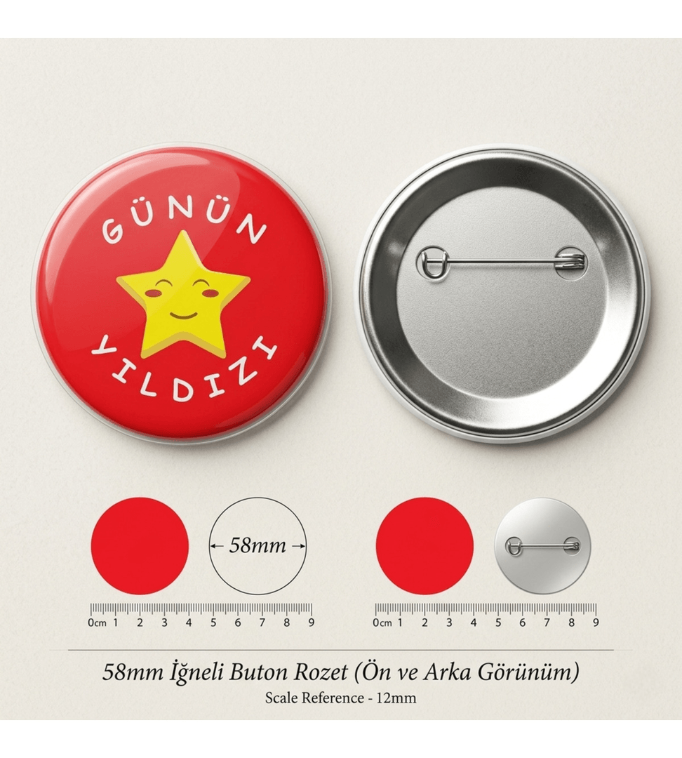 Günün Yıldızı 10 adet BÜYÜK BOY kaliteli baskı iğneli rozet