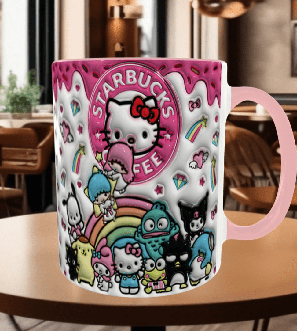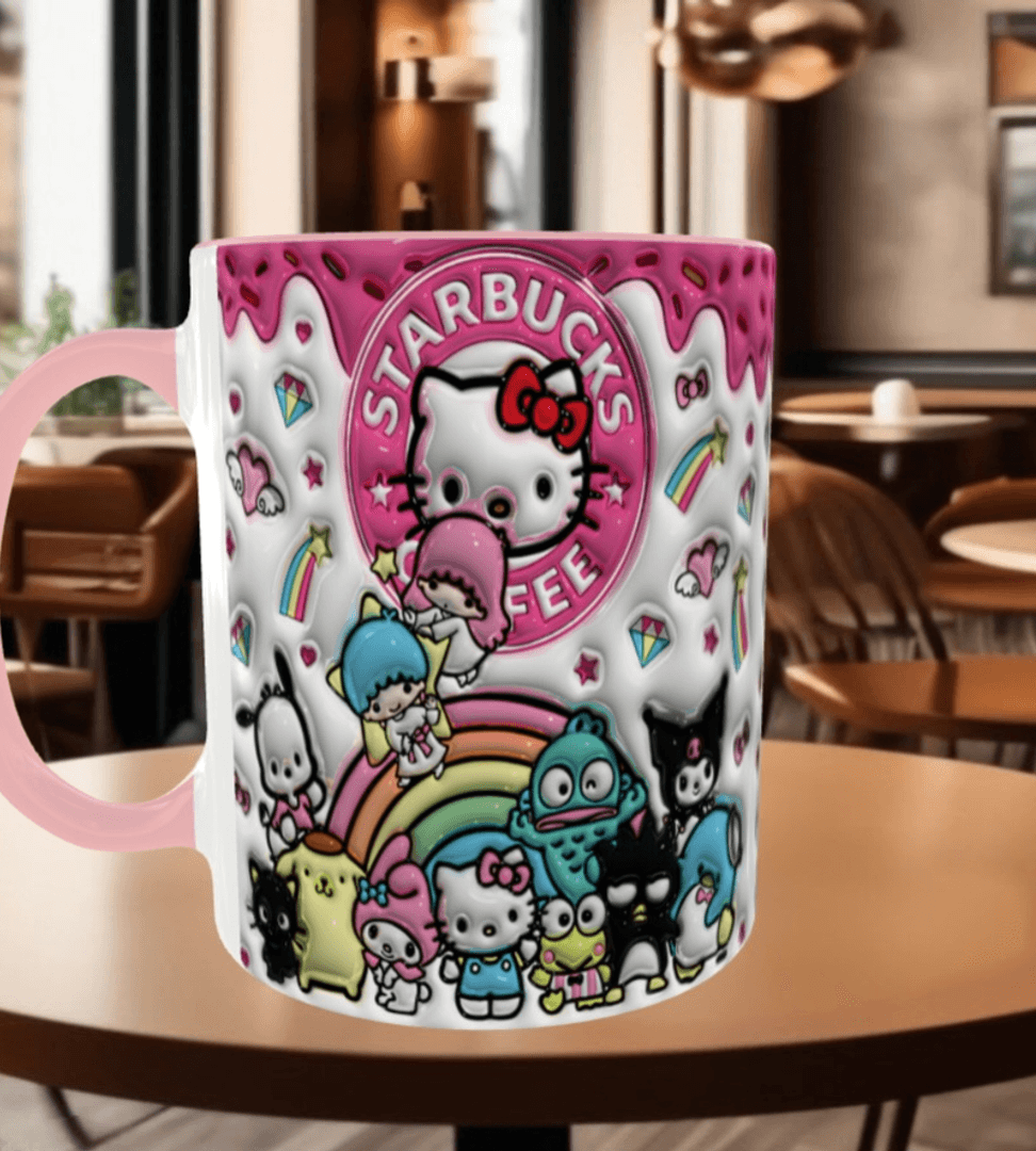 Hello Kitty Baskı içi ve Kulpu Renkli Kupa