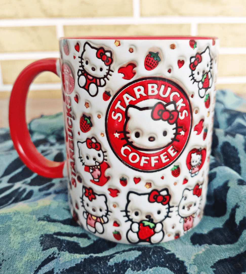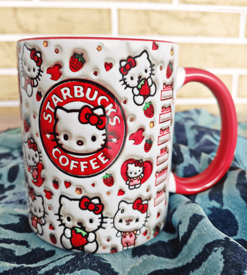 Hello Kitty Baskı içi ve Kulpu Renkli Kupa