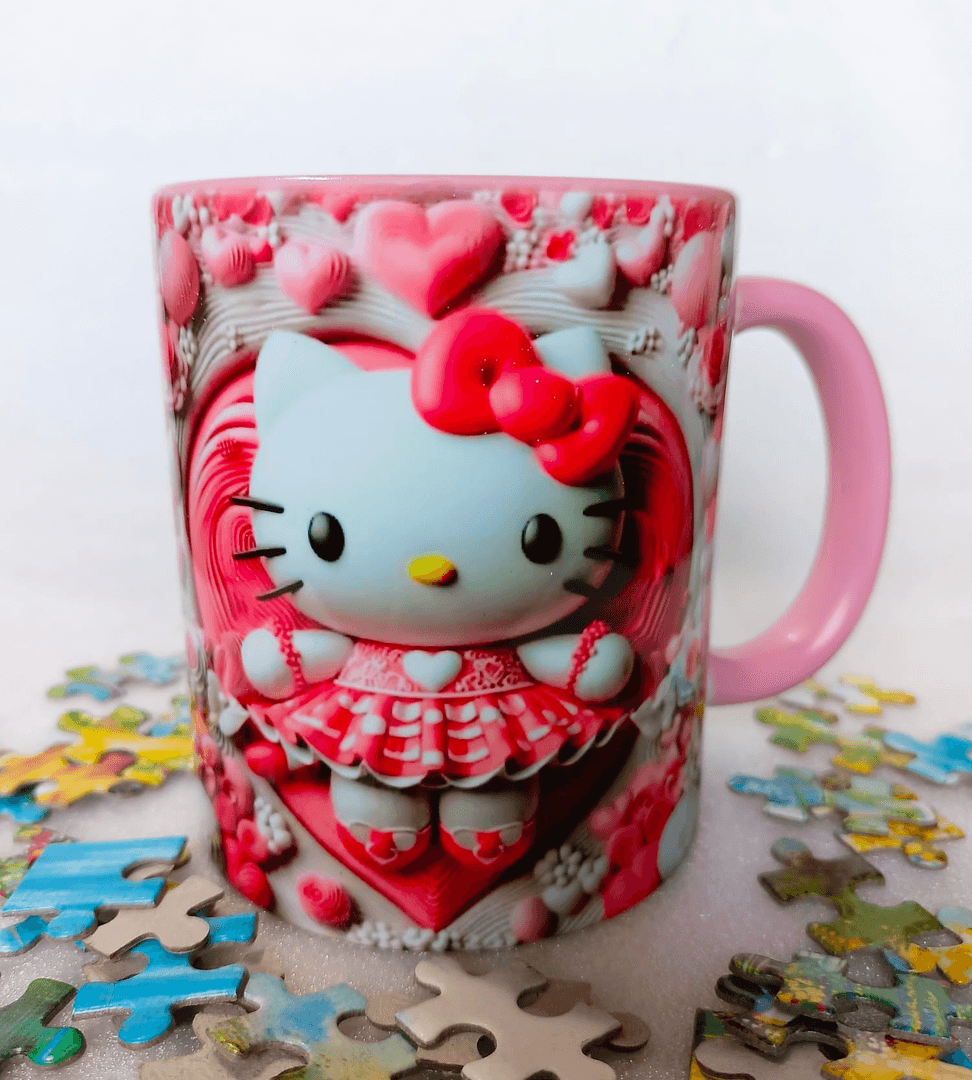 Hello Kitty Baskı içi ve Kulpu Renkli Kupa