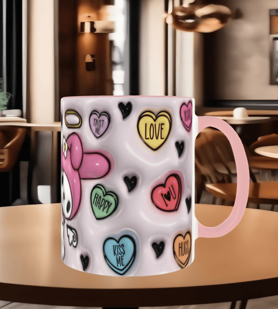 Hello Kitty Baskı içi ve Kulpu Renkli Kupa