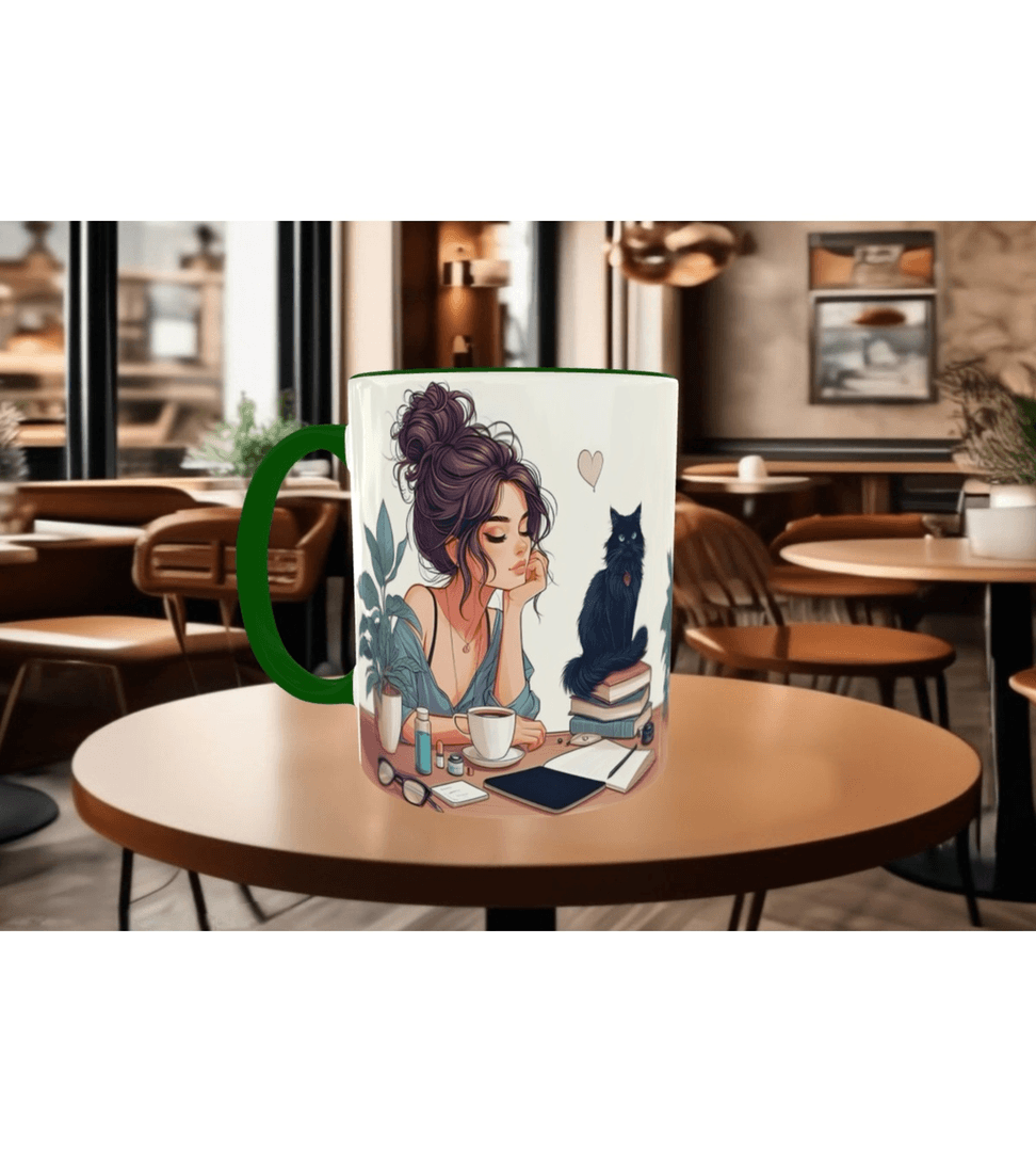 Kahve, kitap, kedi, huzur kaliteli çay kahve kaliteli porselen kupa