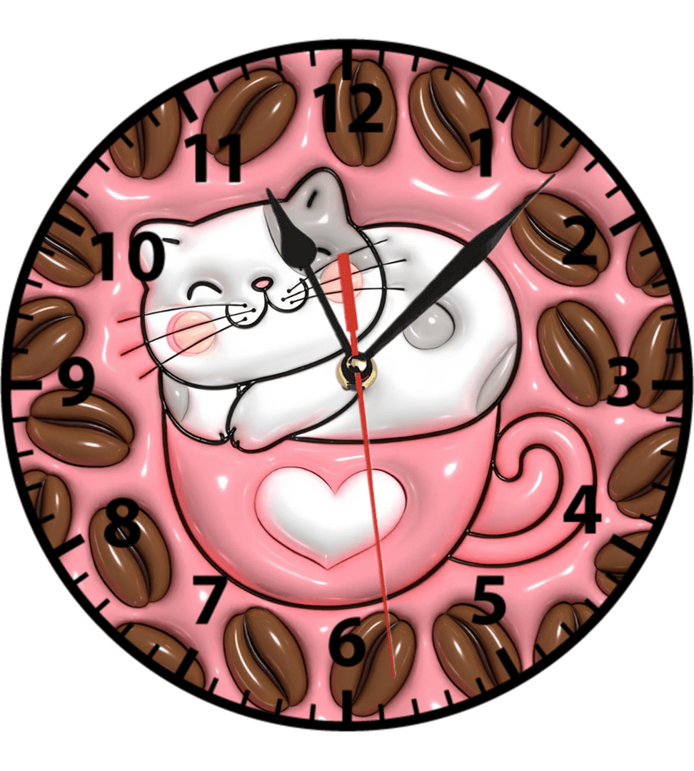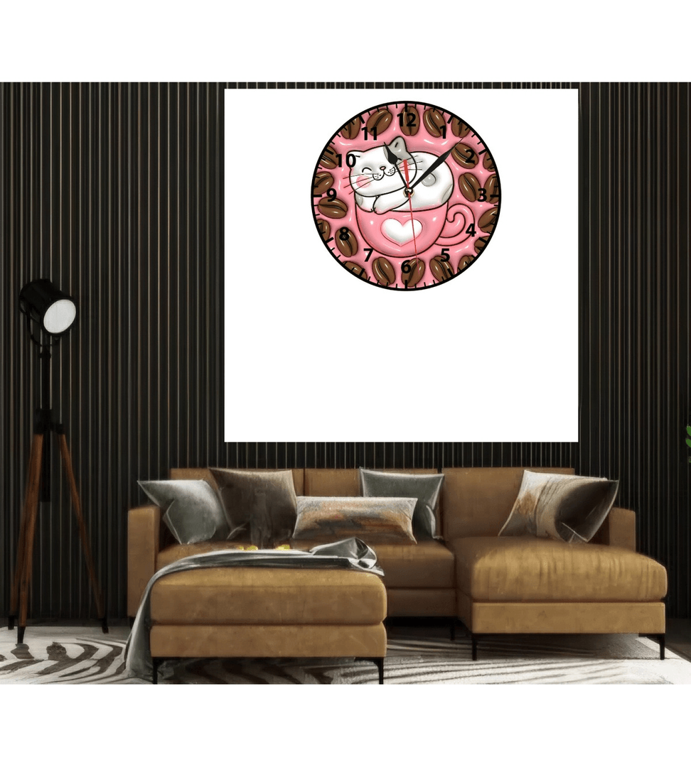 Kahve ve kedi baskı metal duvar saati hediyelik ev dekorasyon