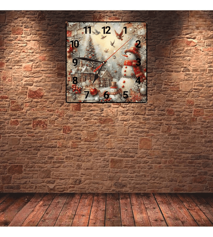 Kardan adam noel christmas vintage baskı metal hediyelim dekoratif kaliteli duvar saati