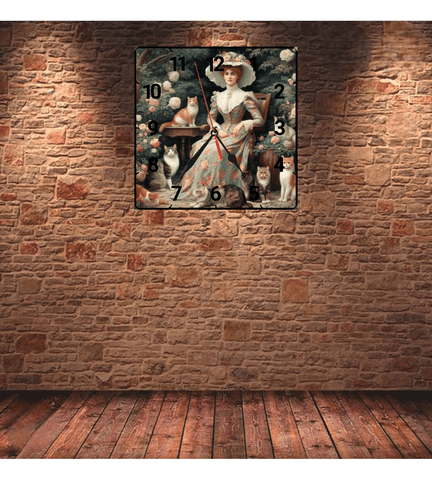 Kedili kadın vintage baskı metal hediyelik dekoratif kaliteli duvar saati