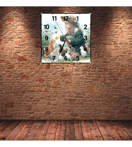 Kedili kız vintage baskı metal hediyelik dekoratif kaliteli duvar saati