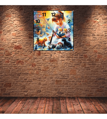 Kedili kız vintage baskı metal hediyelik dekoratif kaliteli duvar saati