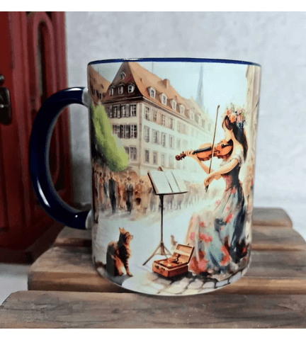 Kemancı kız vintage baskı büyük boy porselen kupa
