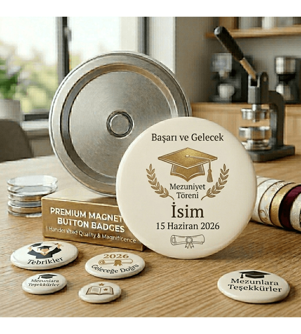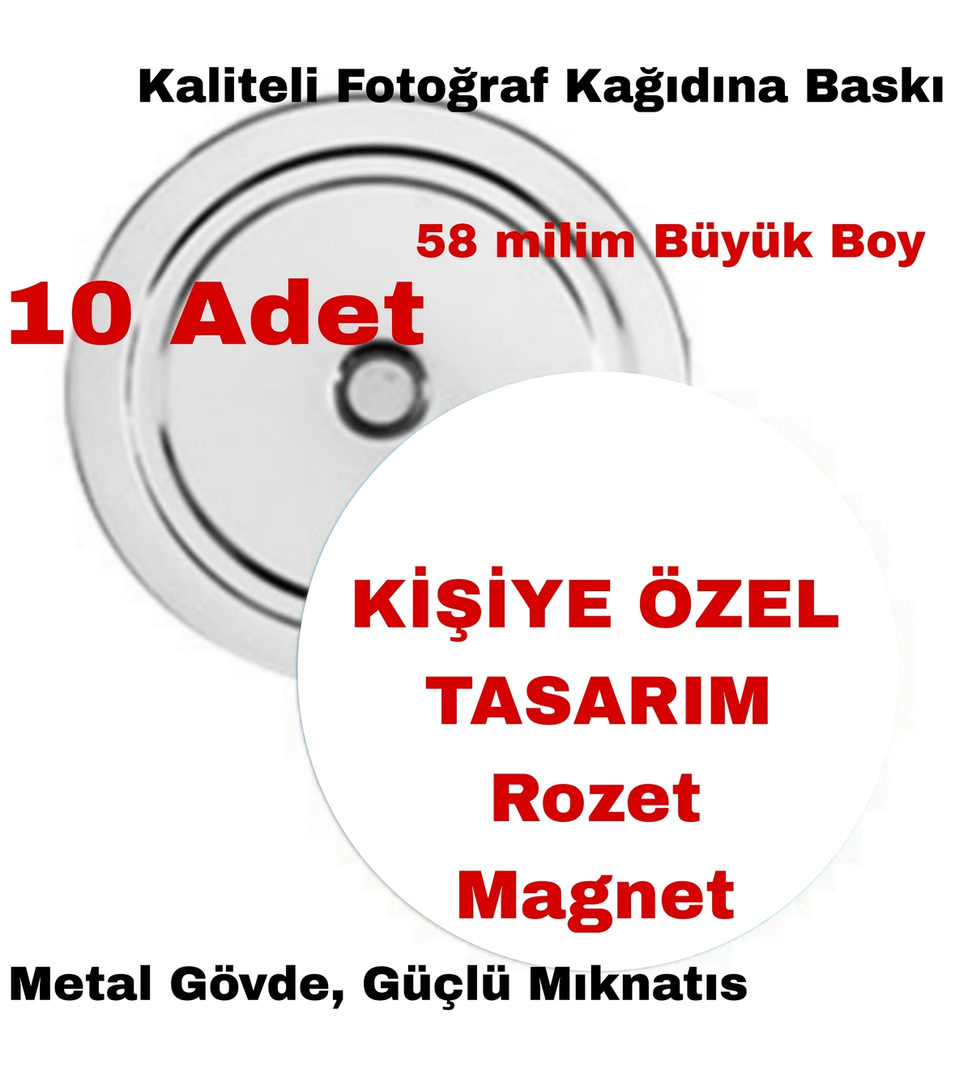 Kişiye özel 10 adet rozet magnet, Büyük boy kaliteli baskı