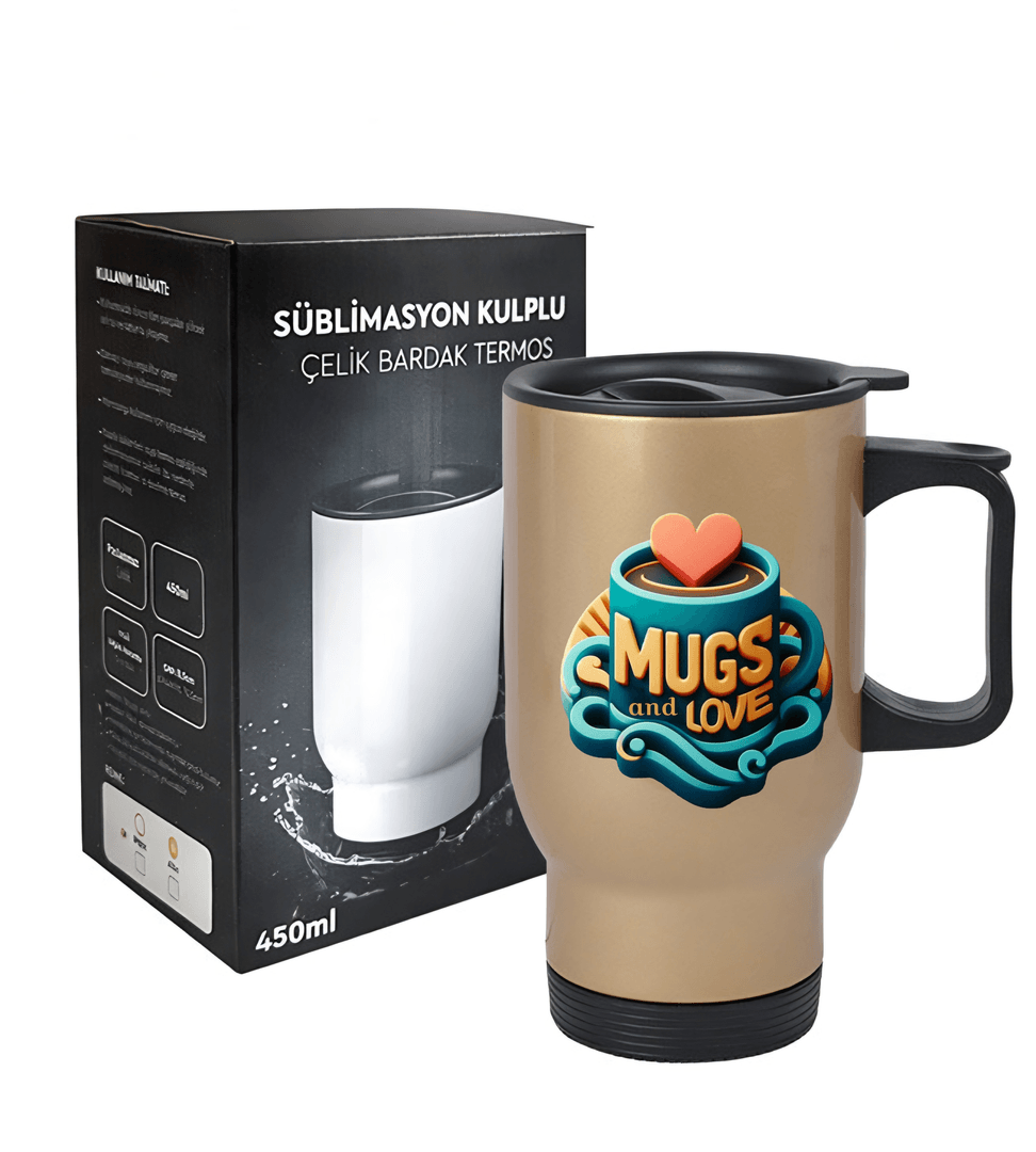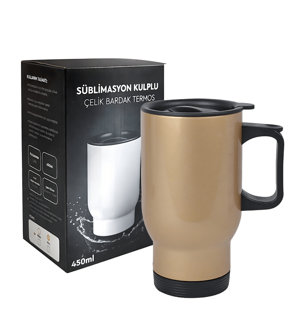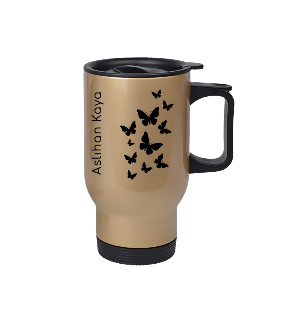 Kişiye özel Altın renk Çelik Kulplu Bardak Termos