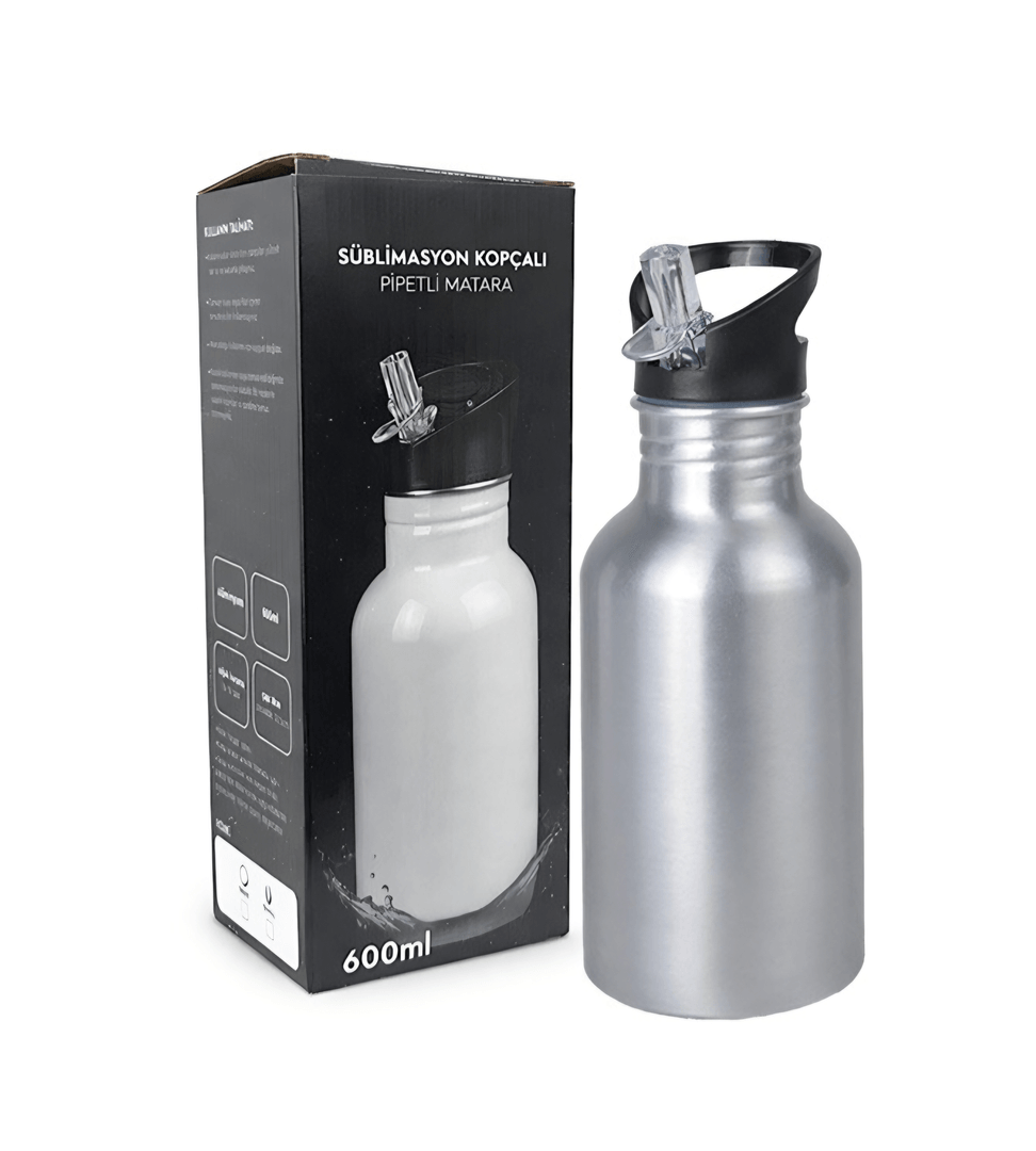 Kişiye özel Gri Kopçalı Pipetli Matara