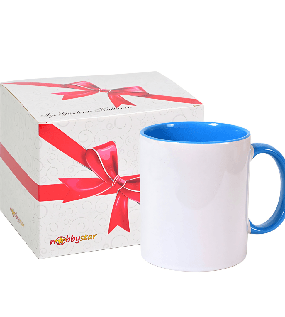Kişiye özel İçi ve Kulpu Açık Mavi Porselen Kupa