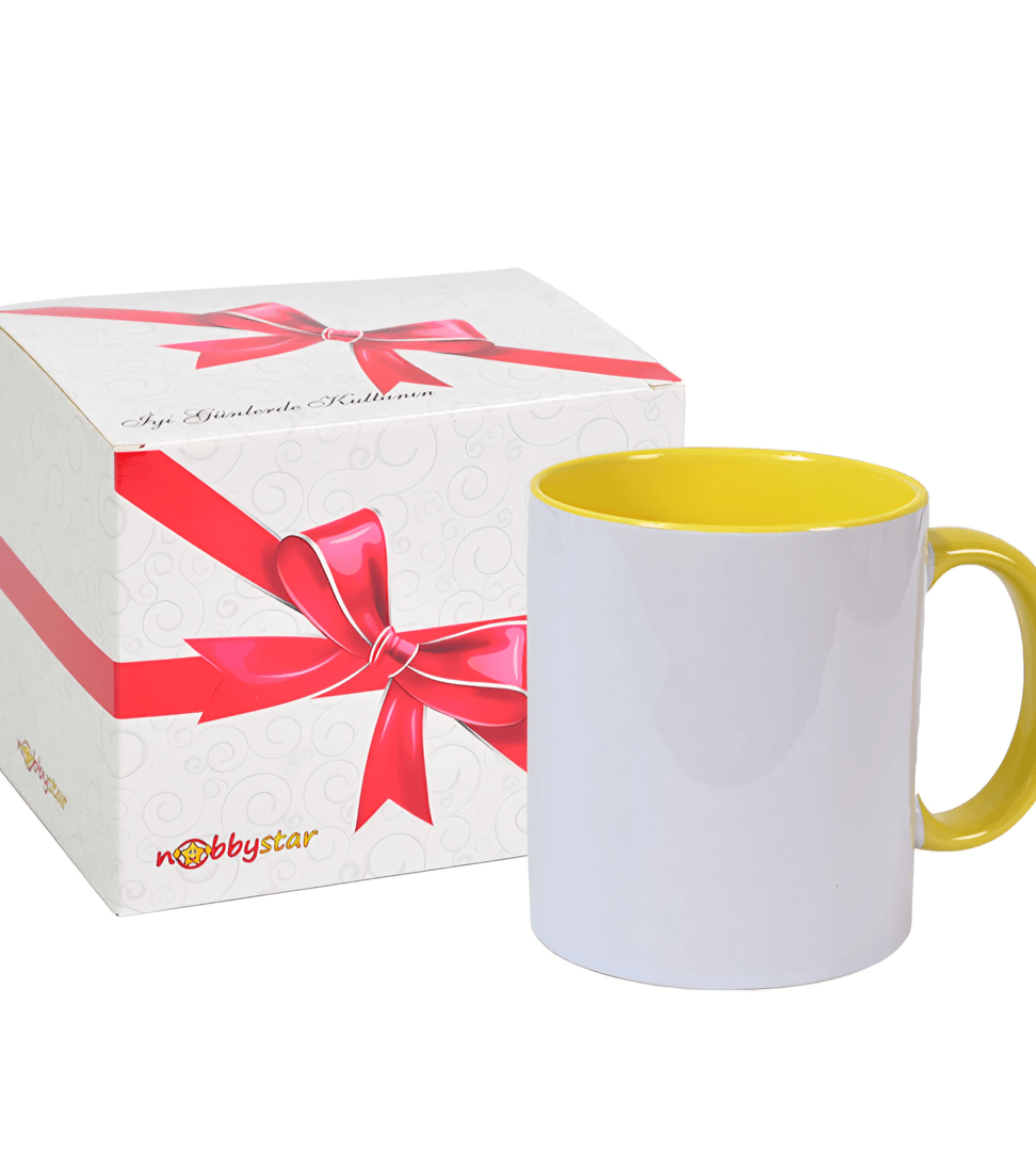 Kişiye özel İçi ve Kulpu Sarı Porselen Kupa