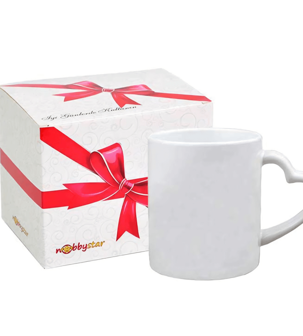 Kişiye özel Kalp Kulplu Beyaz Porselen Kupa