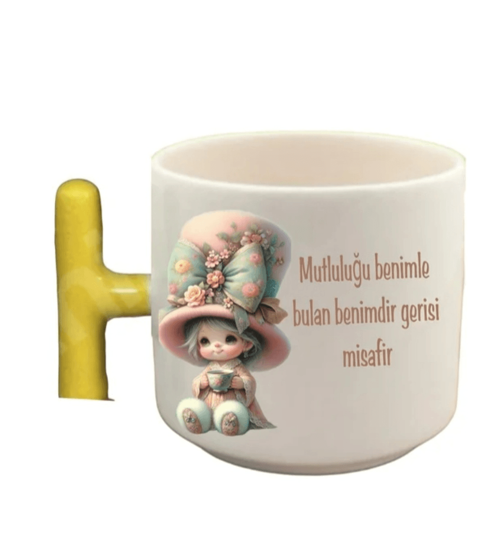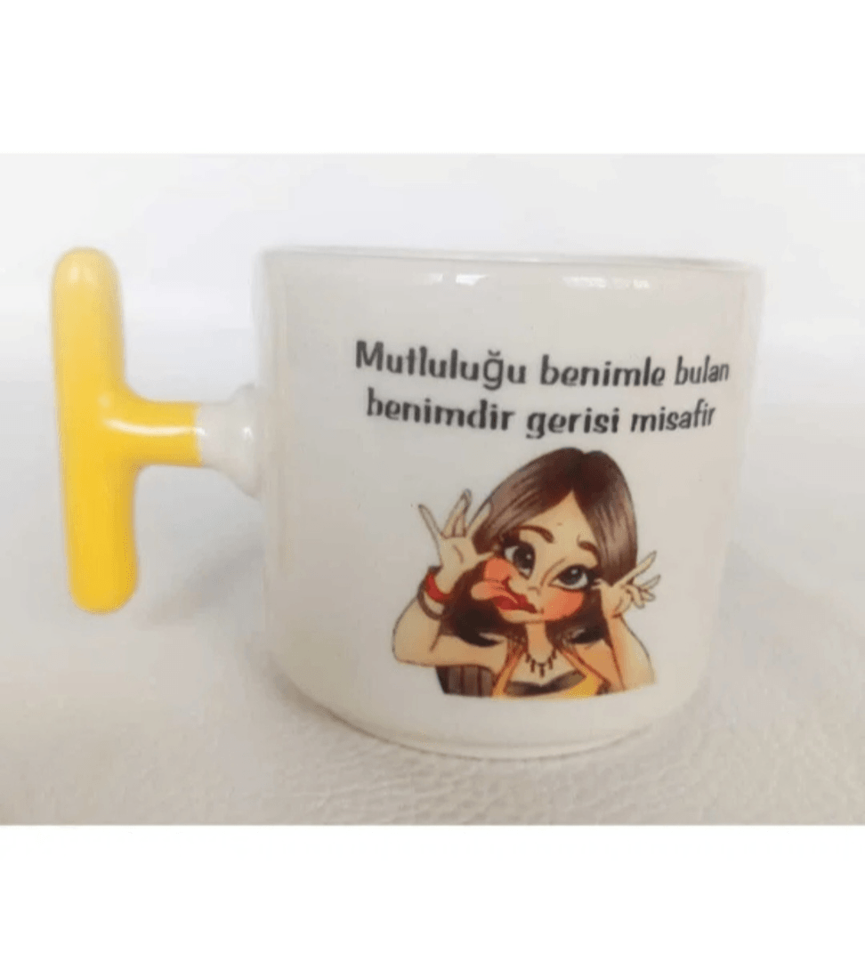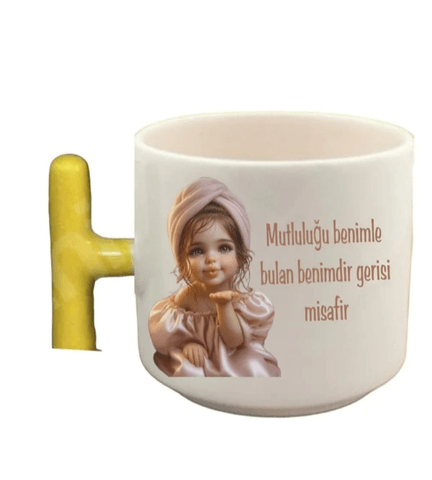 Kişiye özel Sarı T kulp Seramik Çay / Kahve Fincanı