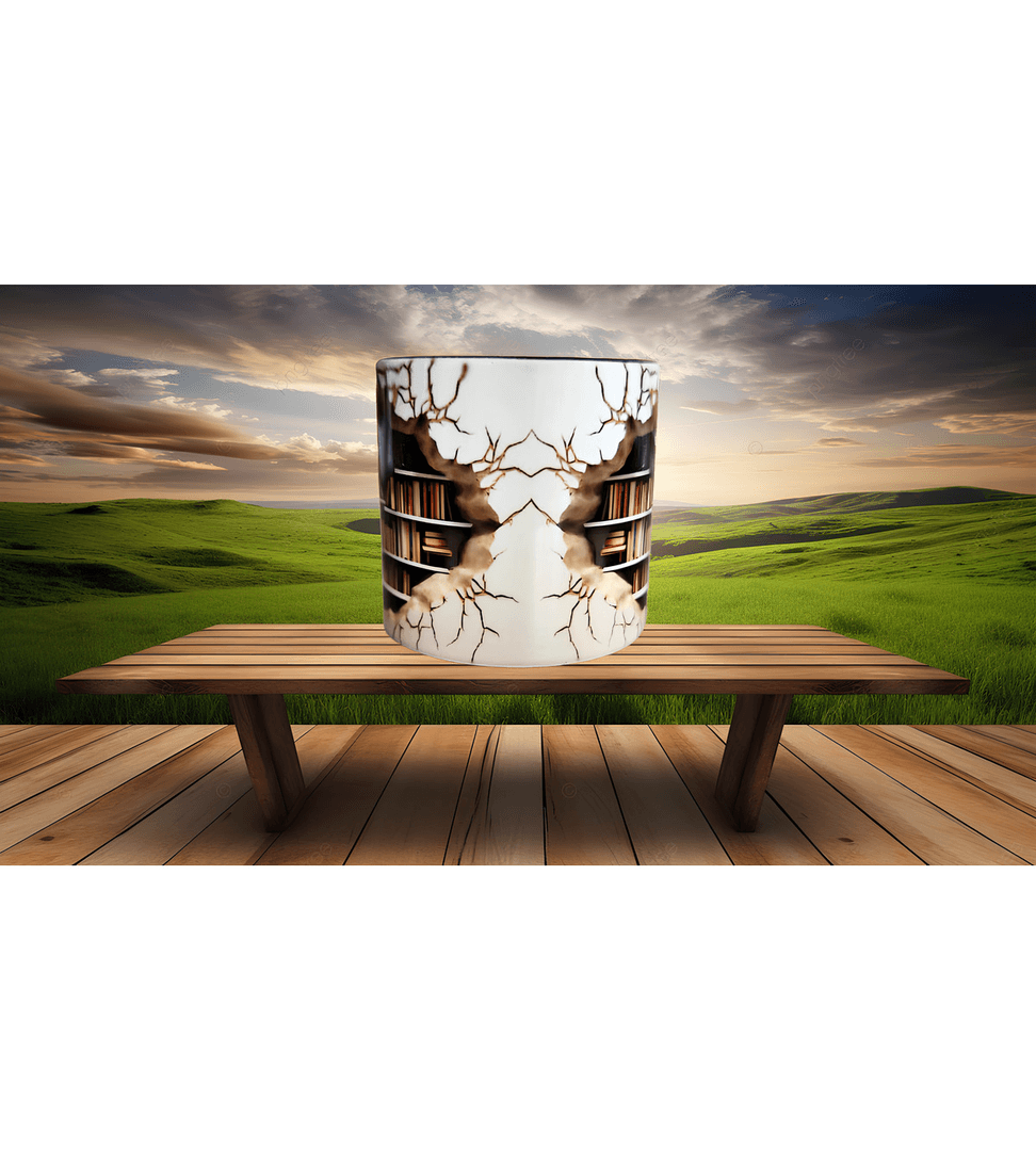 Kitaplık baskı kahve çay fincanı porselen hediyelik