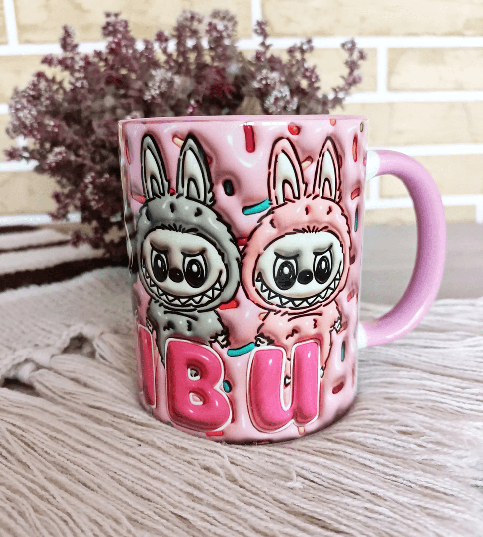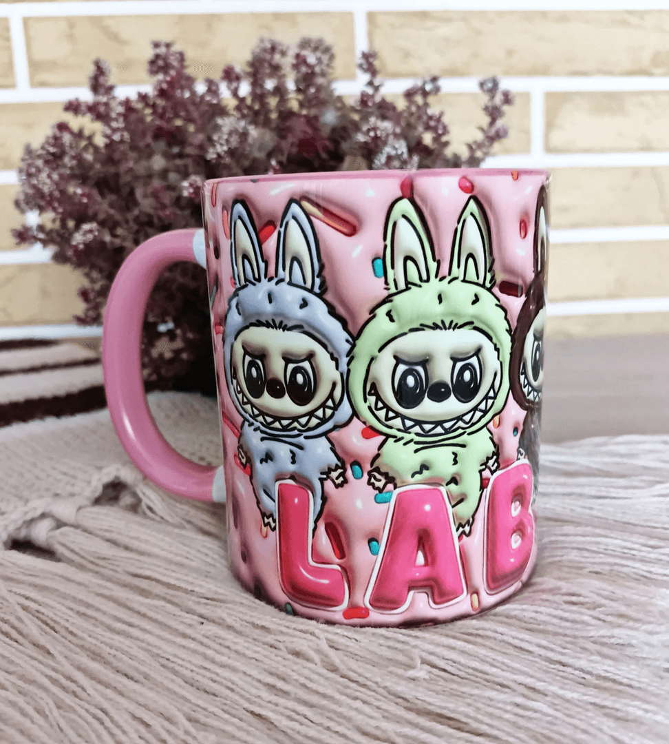 Labubu Baskı içi ve Kulpu Renkli Kupa