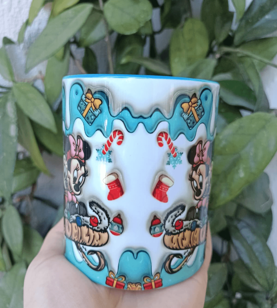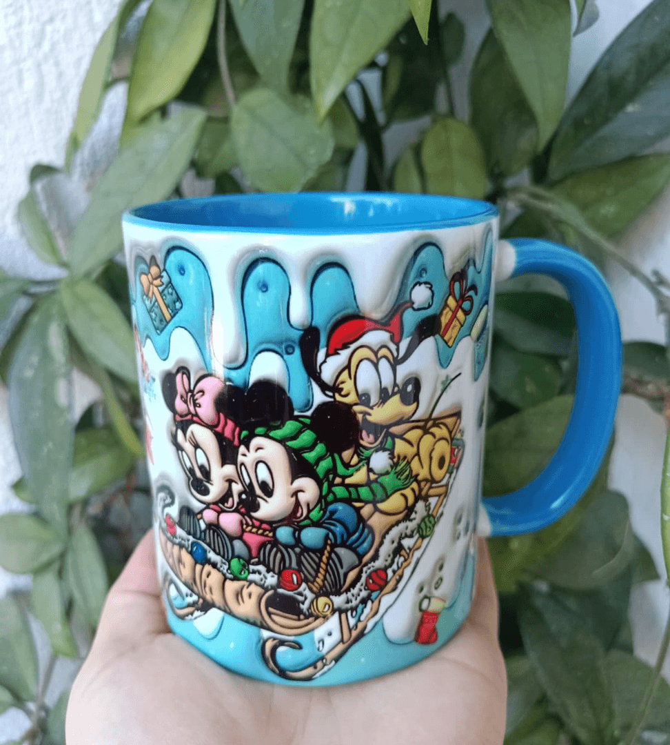 Mickey Noel yılbaşı Baskı içi ve Kulpu Renkli Kupa