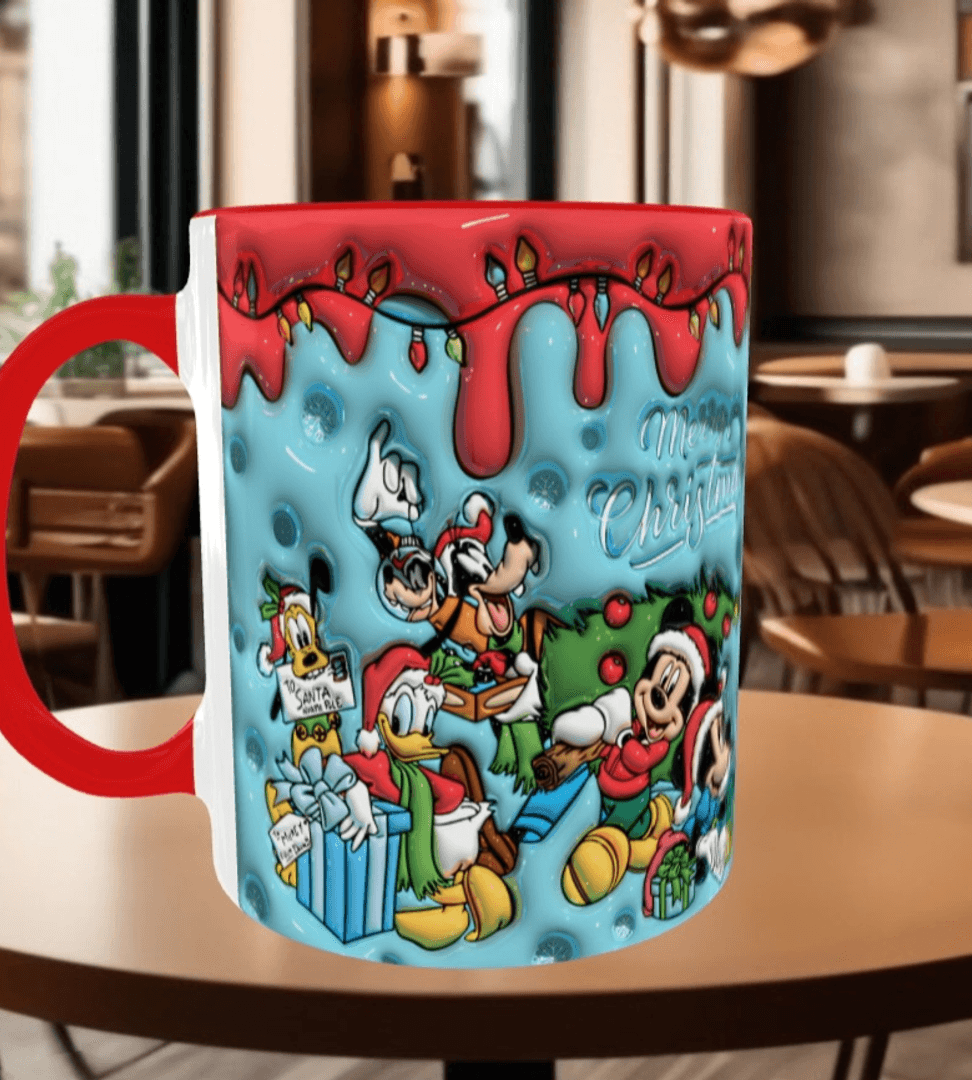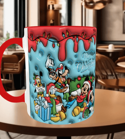Mickey Noel yılbaşı Baskı içi ve Kulpu Renkli Kupa