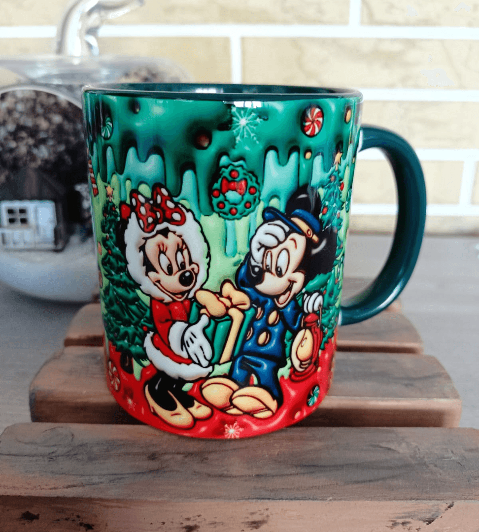 Mickey Noel yılbaşı Baskı içi ve Kulpu Renkli Kupa