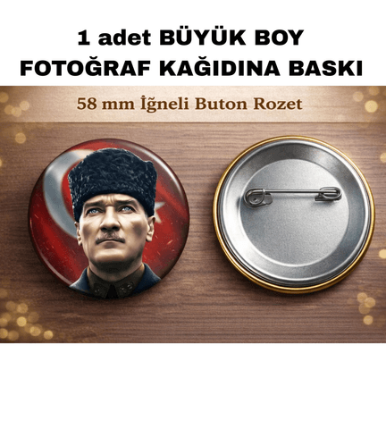 Mustafa kemal atatürk BÜYÜK BOY kaliteli baskı iğneli rozet