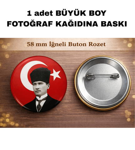 Mustafa kemal atatürk BÜYÜK BOY kaliteli baskı iğneli rozet