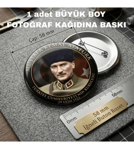 Mustafa kemal atatürk BÜYÜK BOY kaliteli baskı iğneli rozet