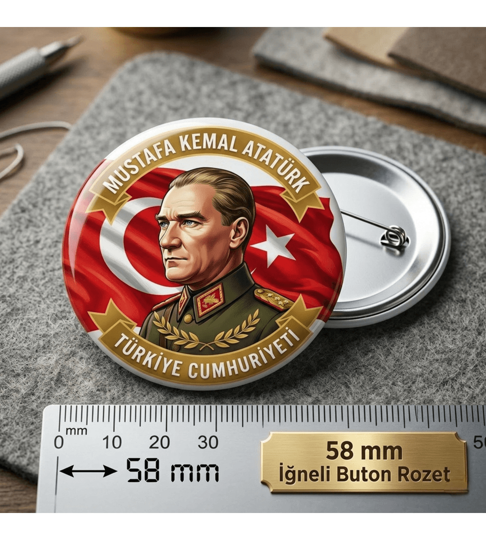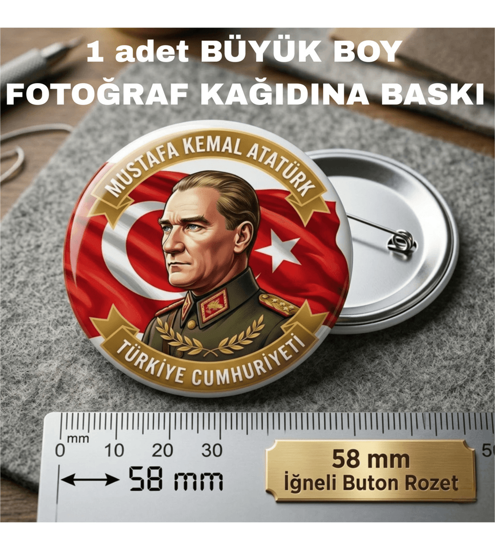 Mustafa kemal atatürk BÜYÜK BOY kaliteli baskı iğneli rozet