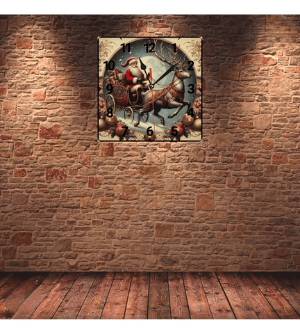 Noel baba christmas vintage baskı metal hediyelim dekoratif kaliteli duvar saati