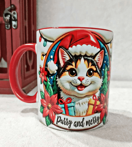 Noel Cat Yılbaşı Kişiselleştirilebilir Porselen Kupa