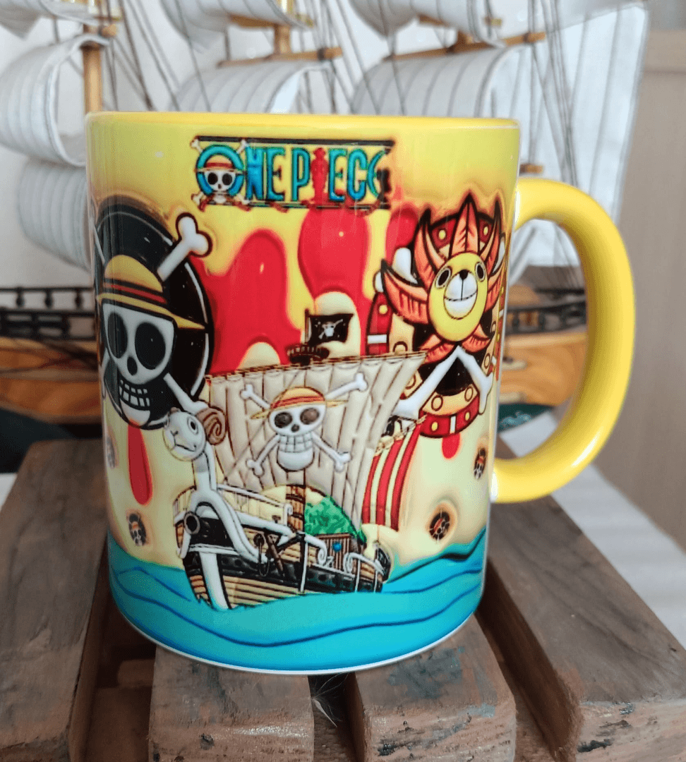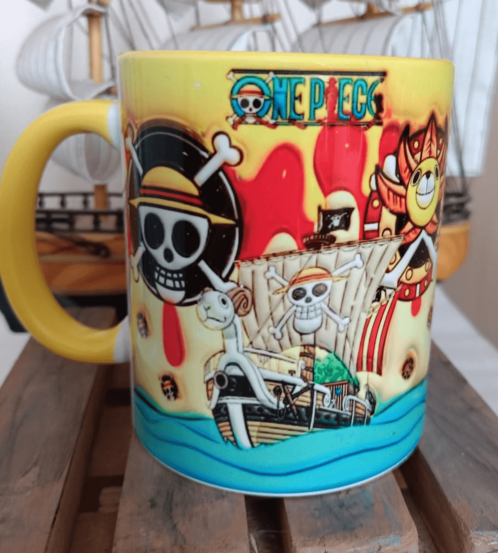 One piece Baskı içi ve Kulpu Renkli Kupa