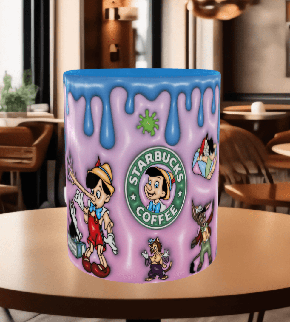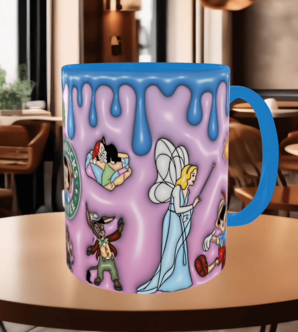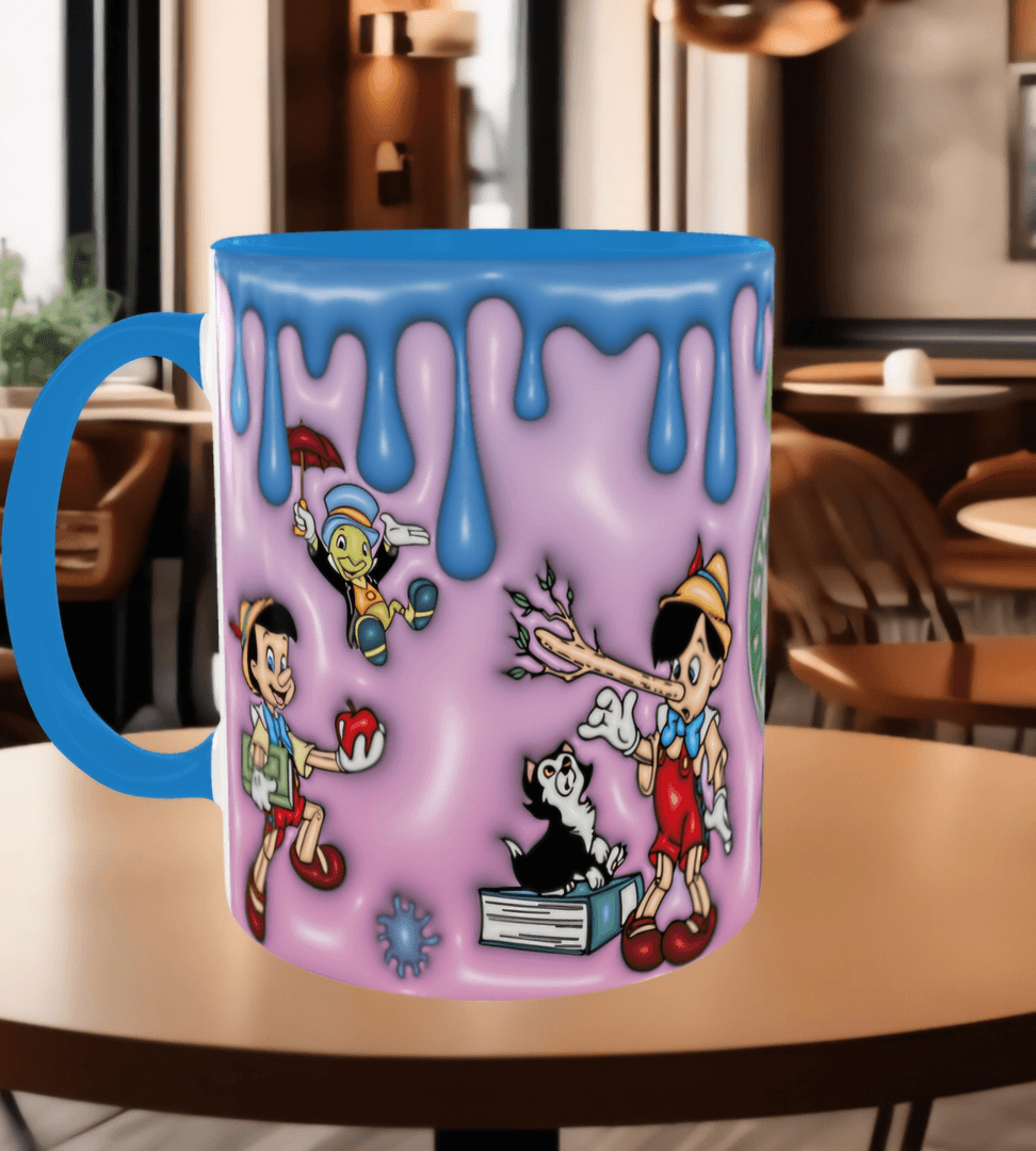 Pinokyo Baskı içi ve Kulpu Renkli Kupa