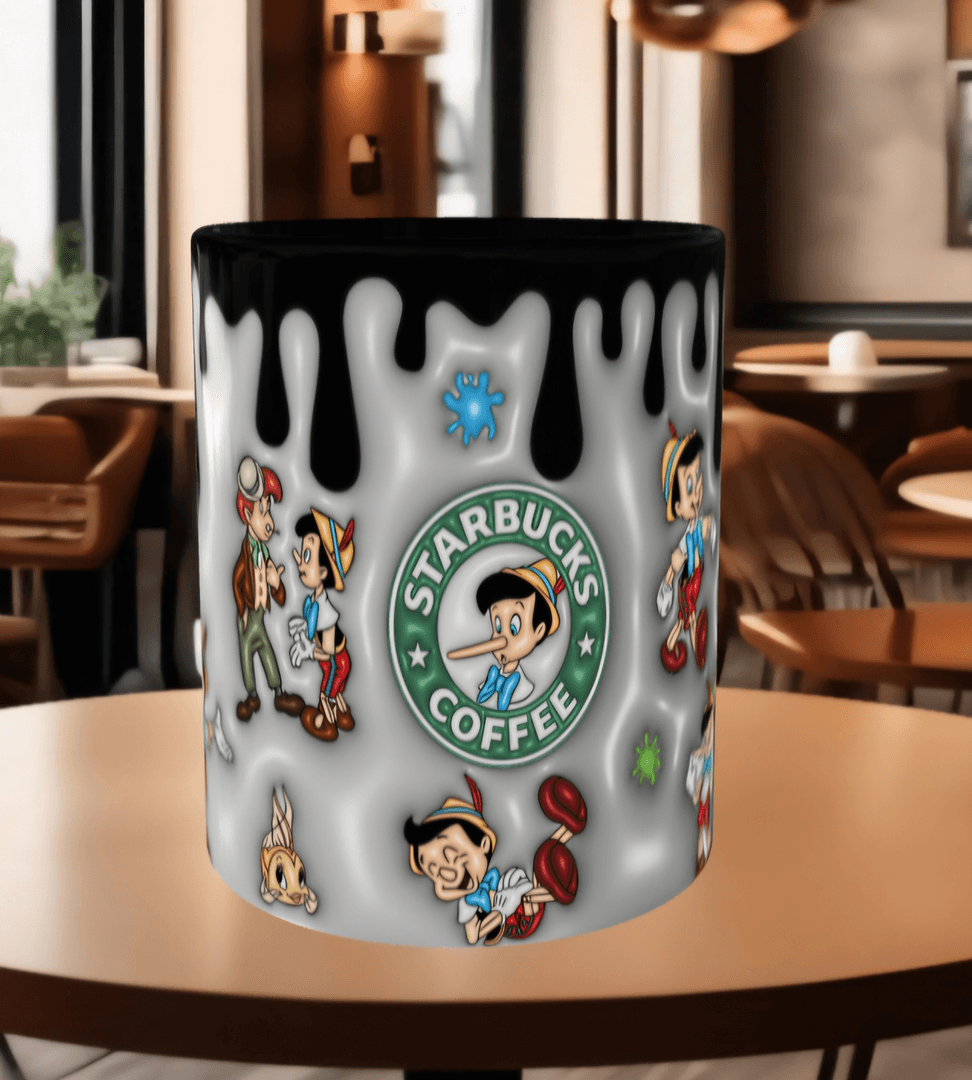 Pinokyo Baskı içi ve Kulpu Renkli Kupa