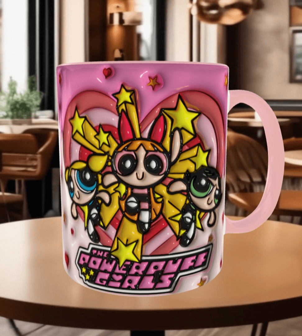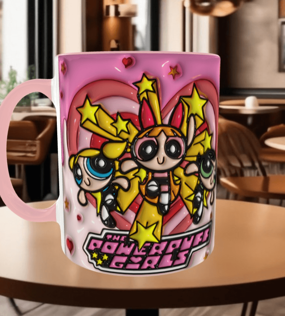 Power puff Baskı içi ve Kulpu Renkli Kupa