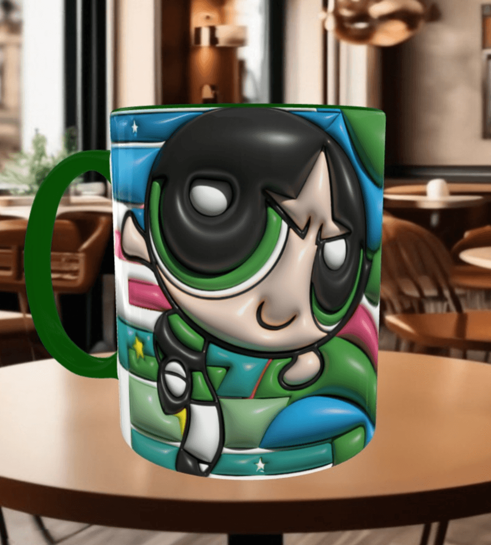 Power puff Baskı içi ve Kulpu Renkli Kupa
