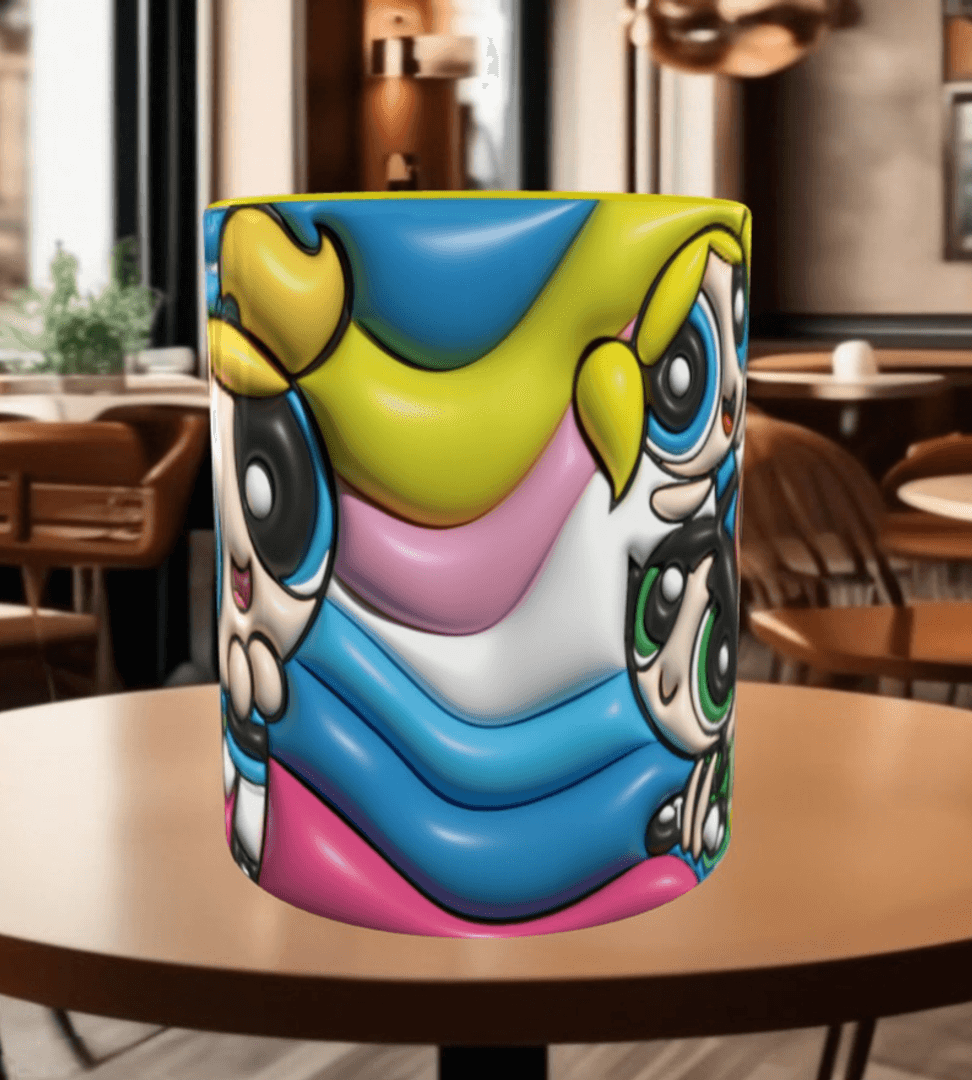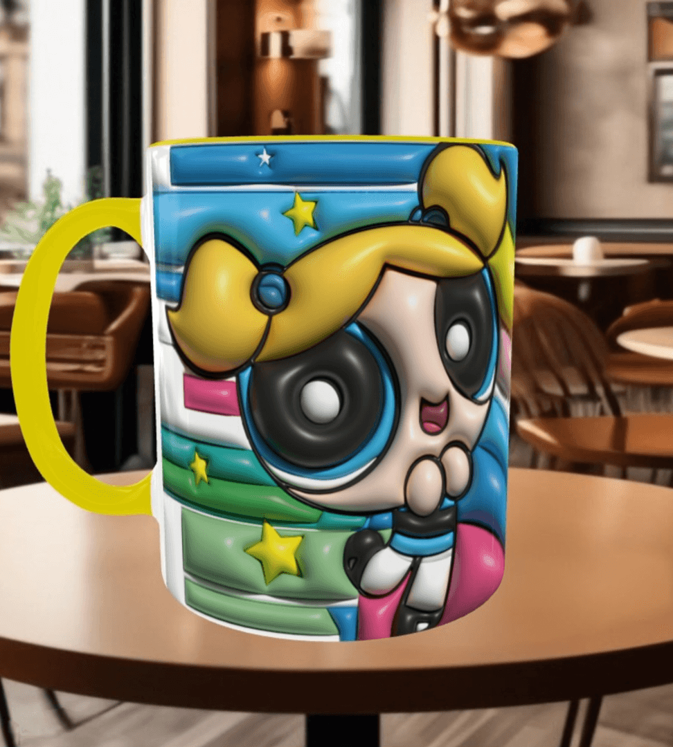Power puff Baskı içi ve Kulpu Renkli Kupa