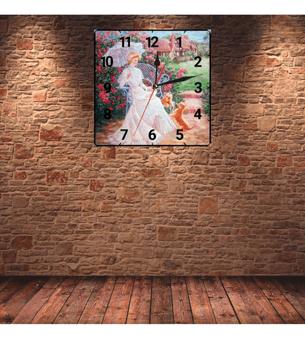 Şemsiyeli kadın vintage baskı metal hediyelik dekoratif kaliteli duvar saati
